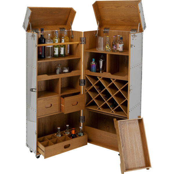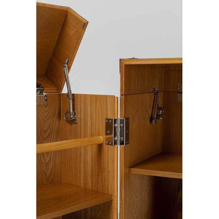 Corpus: Medium density fibreboard (MDF) Stained-lacquered, Wine rack: Ash Plywood Veneered, Fittings: Steel zinc-plated : Castors, Paneling: Stainless steel lacquered, Worktop: 25 kg Max. load-carrying capacity, Shelf: 10 kg Max. load-carrying capacity, Partly dismantled
