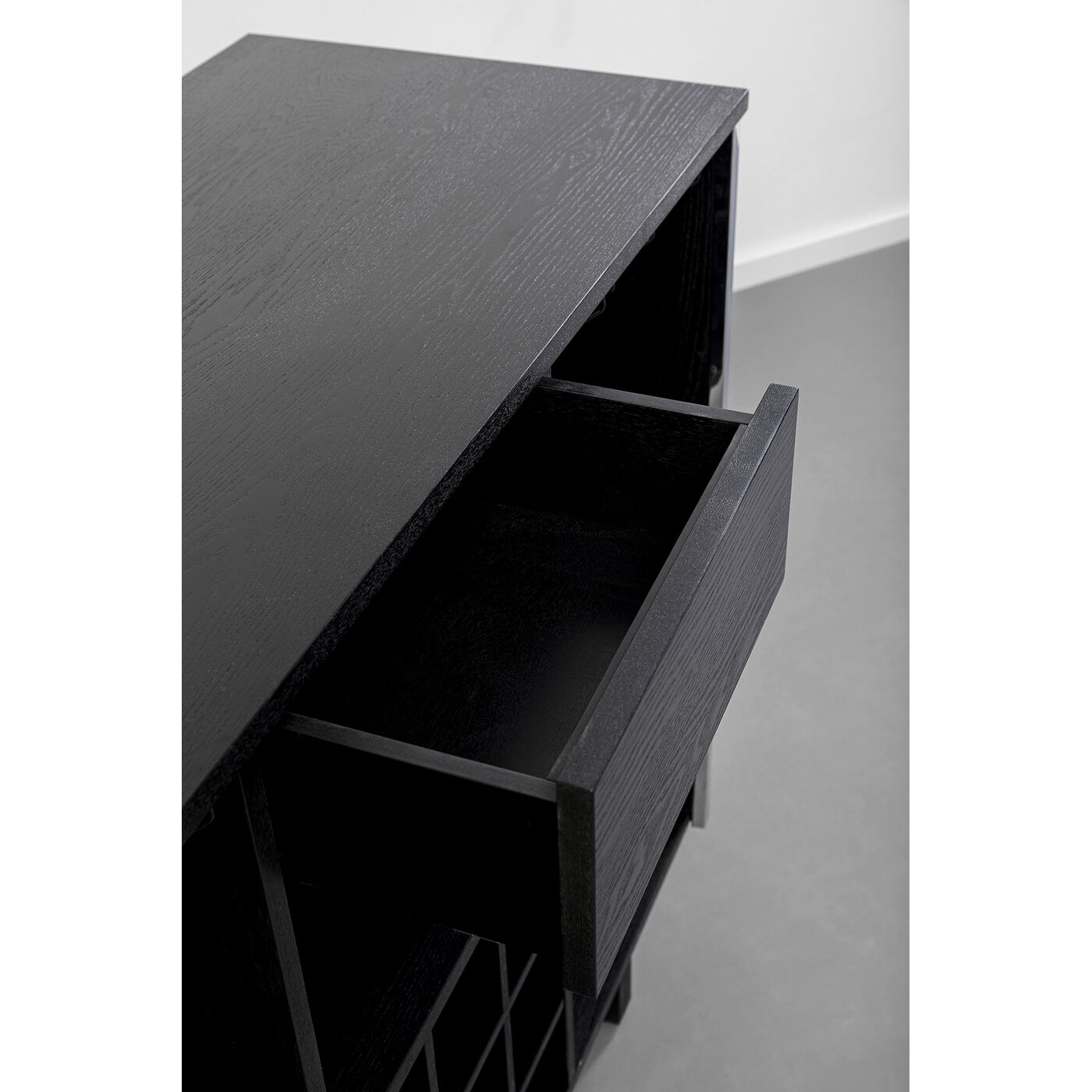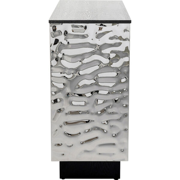 Corpus: Ash Plywood Veneered, Back panel: Medium density fibreboard (MDF) Lacquered, Front: Stainless steel lacquered, Foot/Base: Ash Plywood Veneered, Drawer: Ash Medium density fibreboard (MDF) Veneered, Shelf: Ash Plywood Veneered, Glass shelf: Steel powder-coated, Shelf: Adjustable in height, 100 kg Max. load-carrying capacity, Assembled