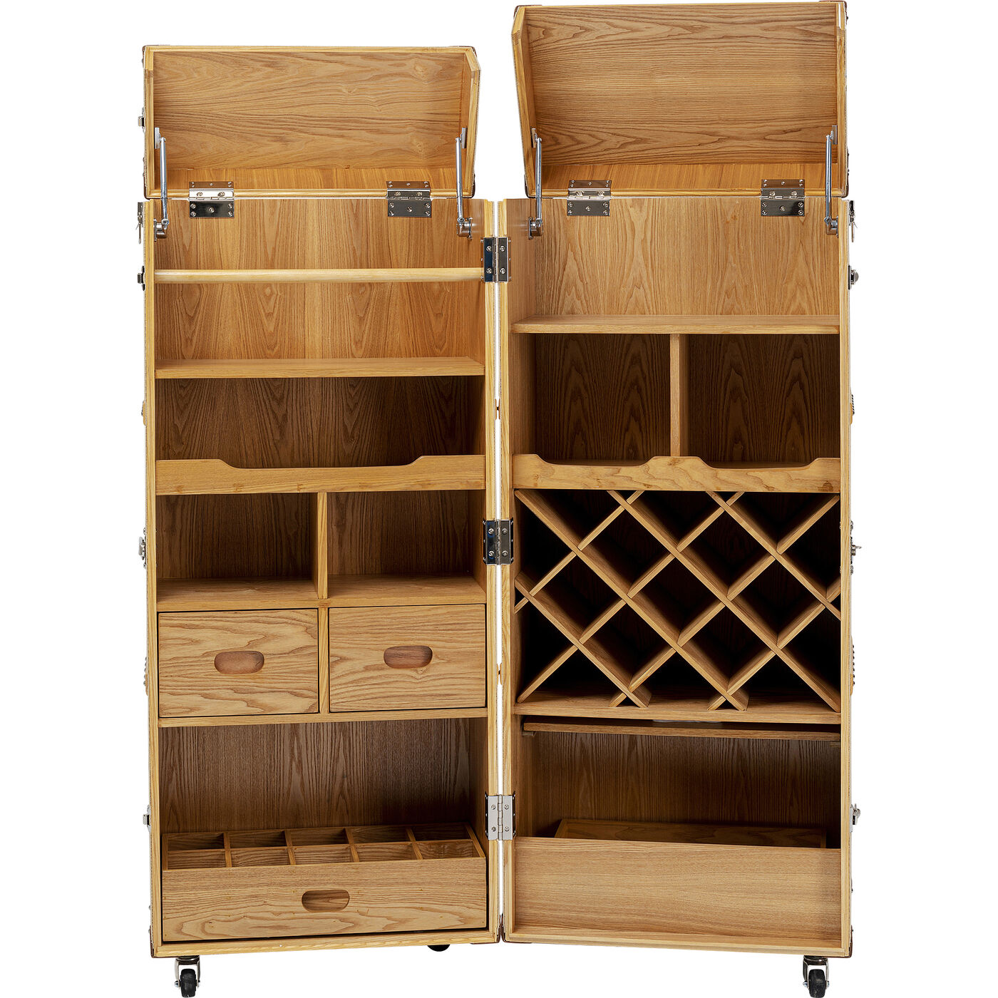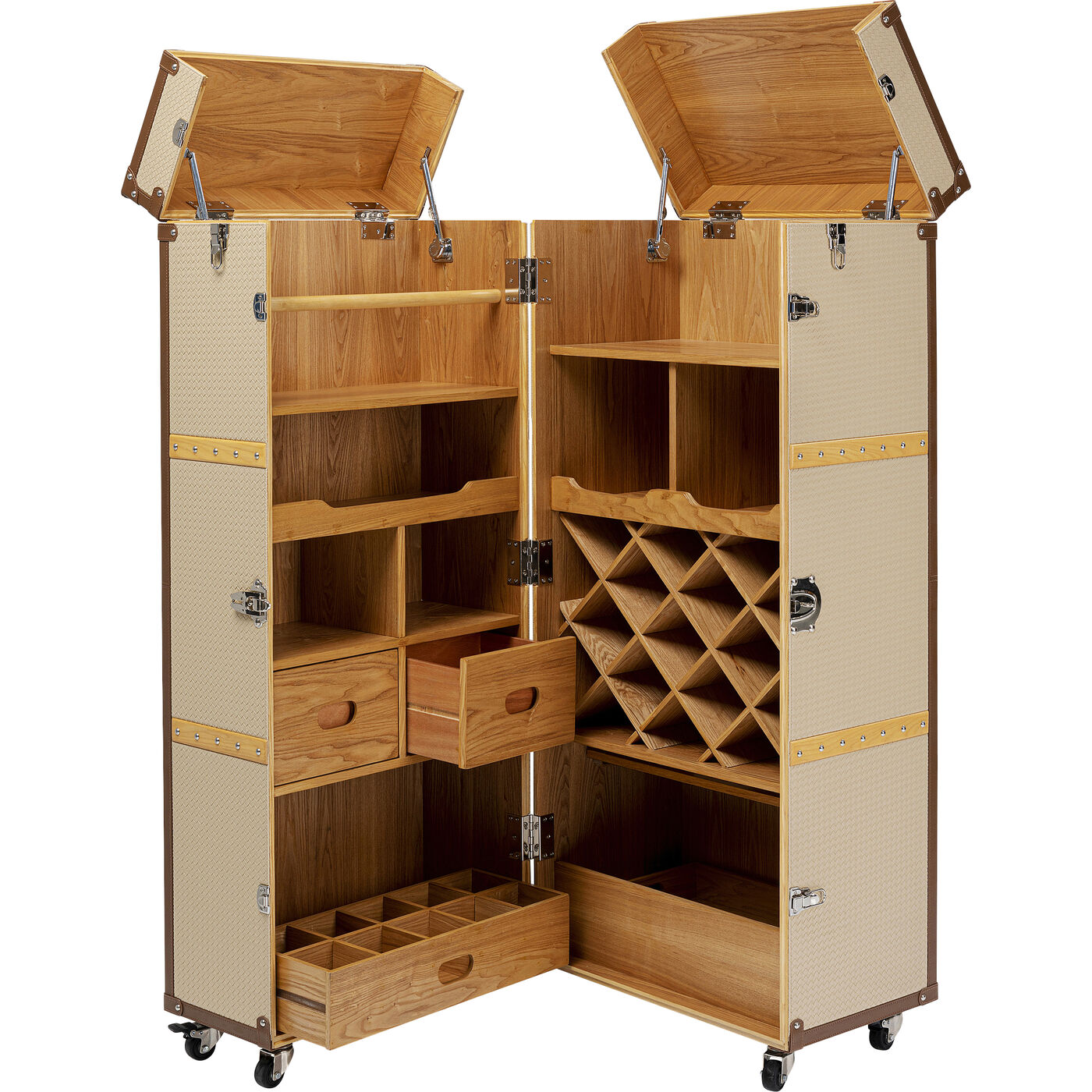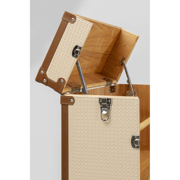Corpus: Medium density fibreboard (MDF) Stained-lacquered, Wine rack: Ash Plywood Veneered, Fittings: Steel zinc-plated : Castors, Cover: 100 % Textile polyurethane-coated, Worktop: 25 kg Max. load-carrying capacity, Shelf: 15 kg Max. load-carrying capacity, Partly dismantled