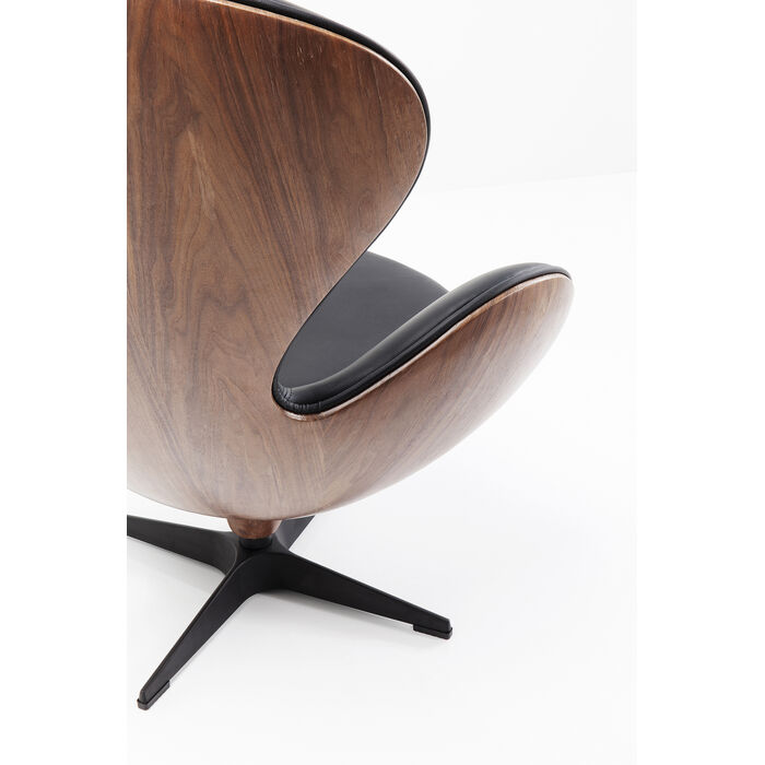 Frame: Steel lacquered, Corpus: Walnut Medium density fibreboard (MDF) Veneered, Cover: Bonded leather, Seat: Fiberglas, Upholstering: 32 kg/m³ Polyurethane, 110 kg Max. load-carrying capacity, 360 ° Rotable, Knocked-down